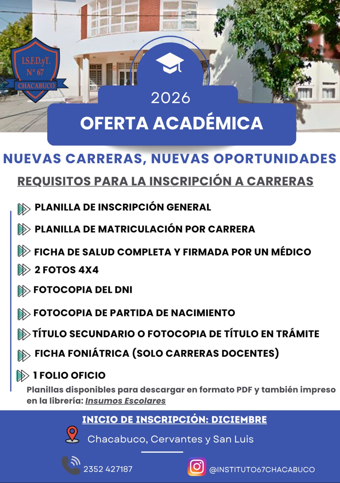 INSCRIPCIONES INGRESANTES 2026: del 01 al 22 de diciembre.